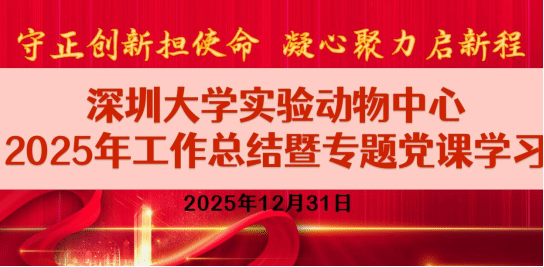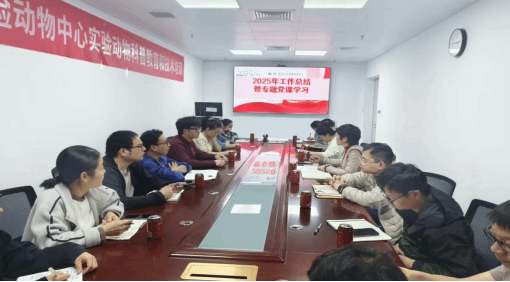 2025 年 12 月 31 日,恰逢国家“十四五”收官、“十五五” 启航关键节点,深圳大学实验动物中心召开 2025 年工作总结暨专题党课学习会议。会议以“守正创新担使命 凝心聚力启新程”为主题,全面回顾2025年中心各项工作成效,系统部署2026年重点任务,同时开展专题党课学习,进一步统一思想、凝聚共识,推动中心工作高质量发展,实现以党学促业务、以业务强平台,凝心聚力提质增效。中心全体工作人员出席会议,动物中心副主任罗银珠主持会议。