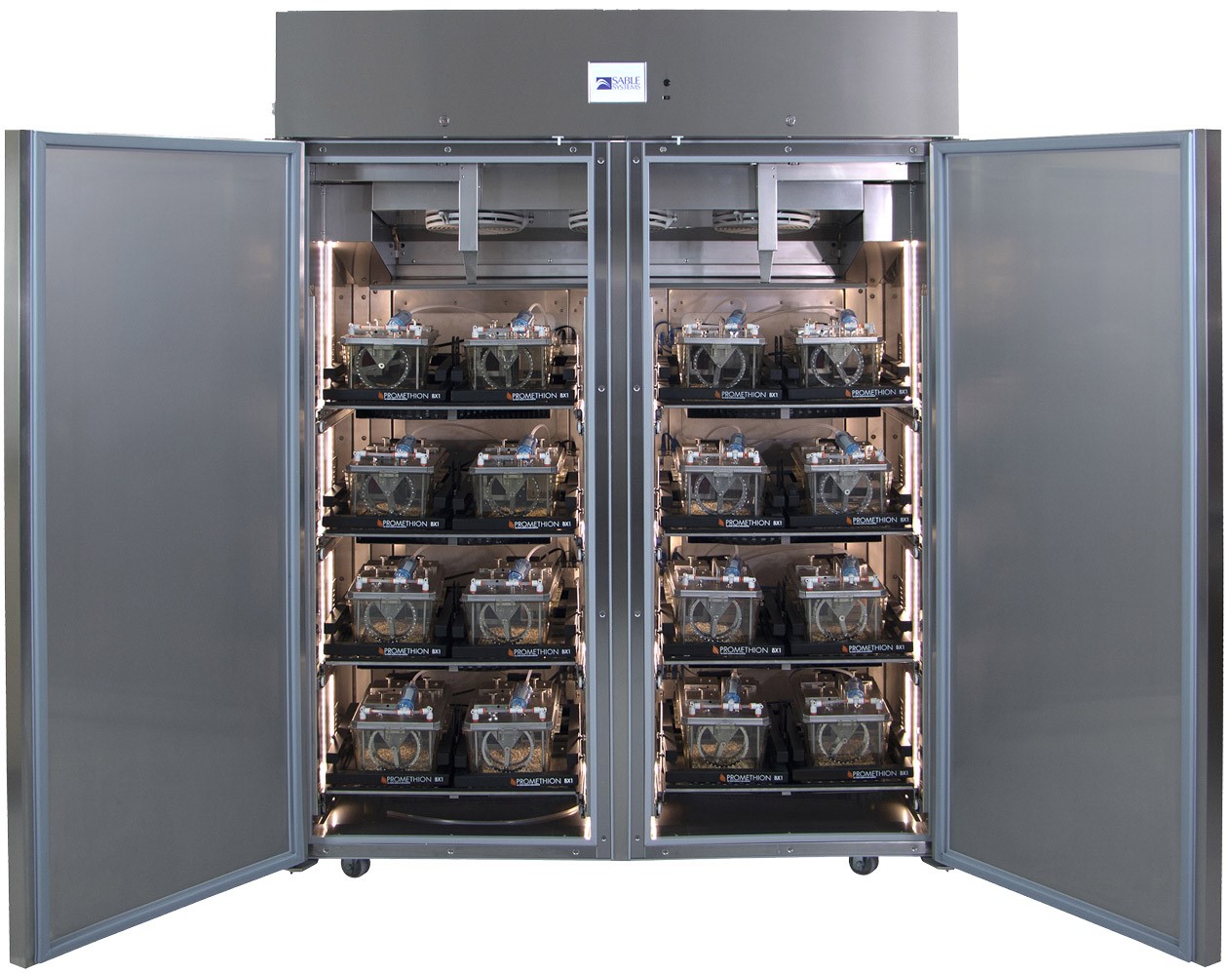 小动物代谢及行为学表型分析系统是一种用于监测小动物能量代谢和行为的设备,通过持续监测小动物氧气消耗量和二氧化碳排放量,获得其能量消耗,呼吸商等参数;基于各式传感器,可实时监测其进食、饮水、体重变化、活动及睡眠,跑轮运动,环境控制箱 (温度、光照)。广泛应用于基础医学、营养学、生殖健康等多个学科领域。